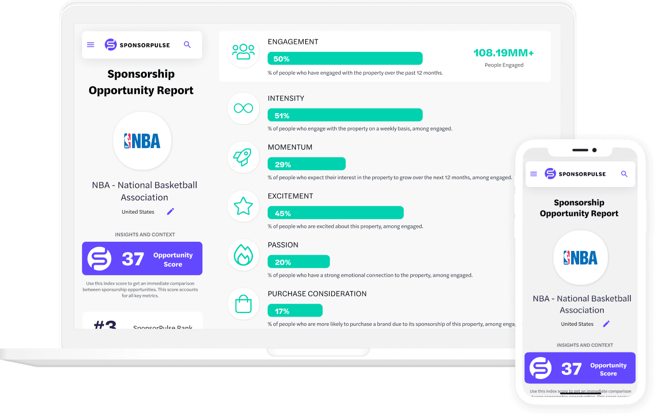 Our platform looks at the power of thousands of properties across sports, entertainment, lifestyle, cause, and music. For each of these properties, and among thousands of consumer segments, we gather seven key metrics that help bring transparency to the health of the property and its potential for sponsorship.